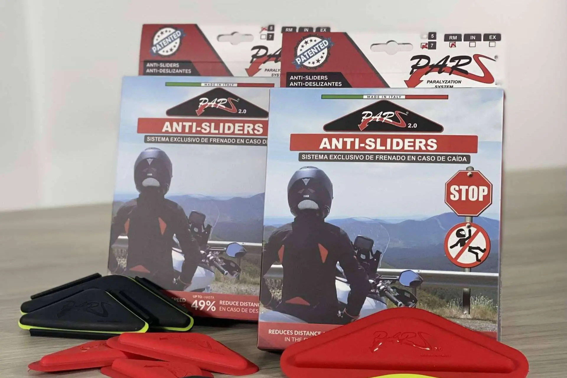 Los Pars Antisliders son las únicas piezas de protección, fabricados con polímeros de alta resistencia, que se colocan en los trajes del motociclista con el objetivo de frenar su cuerpo en caso de afrontar una caída. Esto protege al conductor y ocupante ante golpes contra el asfalto, el guardarraíles, señales de tránsito o cualquier otro obstáculo con el que pueda impactar.