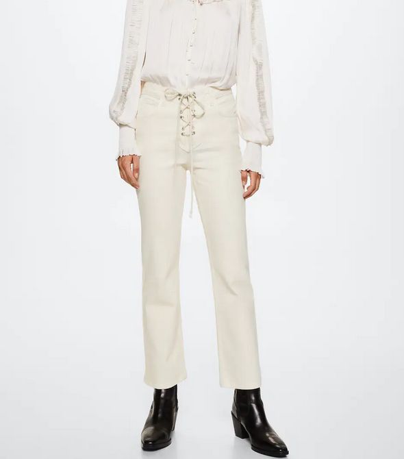 Los jeans rectos se han puesto muy de moda desde hace un tiempo hasta esta parte. Así que si quieres ir a la última, una de las mejores cosas que puedes hacer es pasarte por Mango y hacerte con estos que ves en la imagen. Además destacan por tener un sistema de cierre de cordón. Su precio es de solo 39’99 euros.