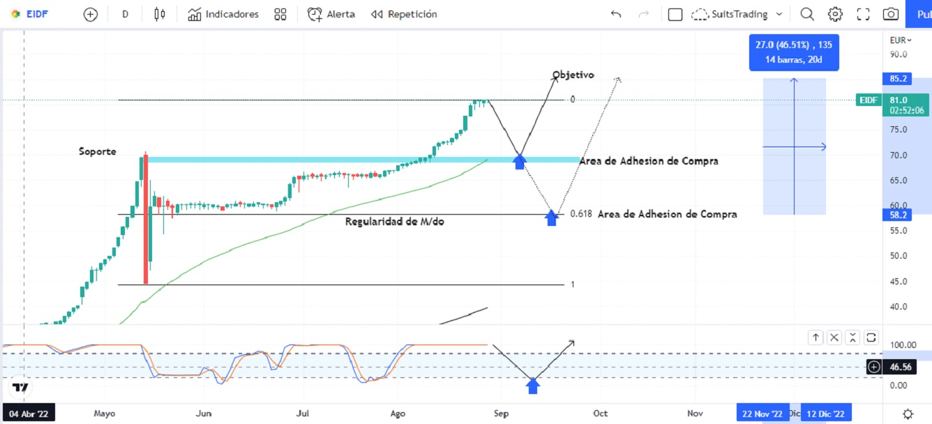 Desde que EiDF comenzó a cotizar en bolsa en julio de 2021 hasta los precios actuales, las acciones se han revalorizado cerca de 1.369%. En lo corrido de este año, encontramos un camino ascendente que le ha representado más del 325% de revalorización y desde mediados de mayo, las acciones suman 16 semanas en verde. Esto sin olvidar que EiDF ya acumula más de 1.100 millones de euros en capitalización bursátil, lo que significa un valor superior a compañías del Ibex.