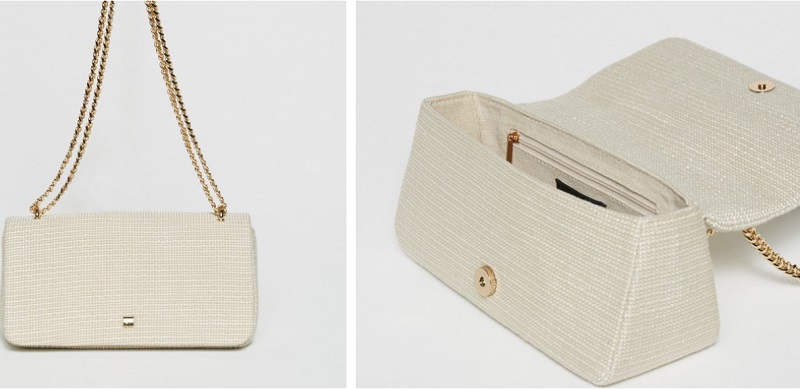 Dentro de las mejores opciones que se pueden encontrar dentro de El Corte Inglés es un bolso de color crudo. De acuerdo a lo señalado por los diseñadores de la firma, el mismo está hecho con un tejido rústico. Por otro lado, tiene incluida un asa doble con forma de cadena dorada. A diferencia de los anteriores productos mencionados, esta se cierra mediante una solapa con botón de presión en el centro. Puedes adquirirlo en Sfera por 11’99 euros.