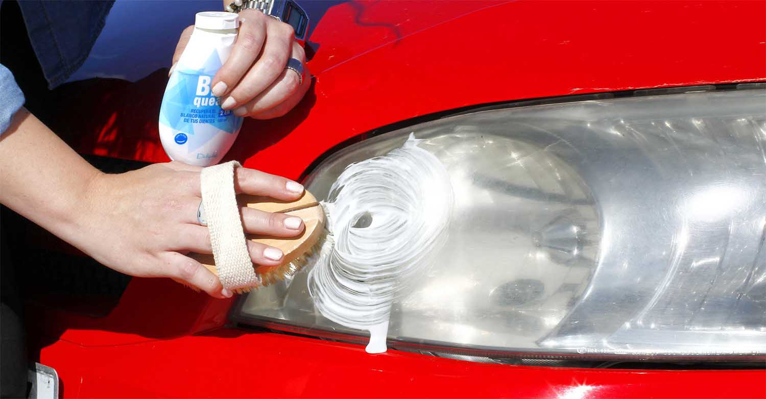 Los faros de algunos coches tienden a ponerse opacos si no se cuidan de forma frecuente. Al ser imprescindibles para una buena visibilidad, hay que prestarles cierta atención. Para reducir esa opacidad que les hace amarillear, un truco casero que suele funcionar es aplicar pasta de dientes y frotar con una bayeta con movimientos circulares. Después, impregnamos un trapo con producto quitagrasas y retiramos los restos de dentífrico.