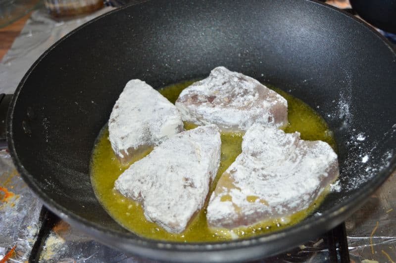 El siguiente paso es igualmente muy fácil de realizar. Simplemente hay que poner una sartén en el fuego, con un poquito de aceite. Mientras este último se calienta, se pasa el atún por algo de harina y se le añade sal y pimienta. Acto seguido el pescado se dora por los dos lados. No es necesario hacerlo mucho, no pretendemos eso, sino simplemente que coja un poco de color y de sabor (lo notaréis por el rico aroma que desprenderá enseguida).