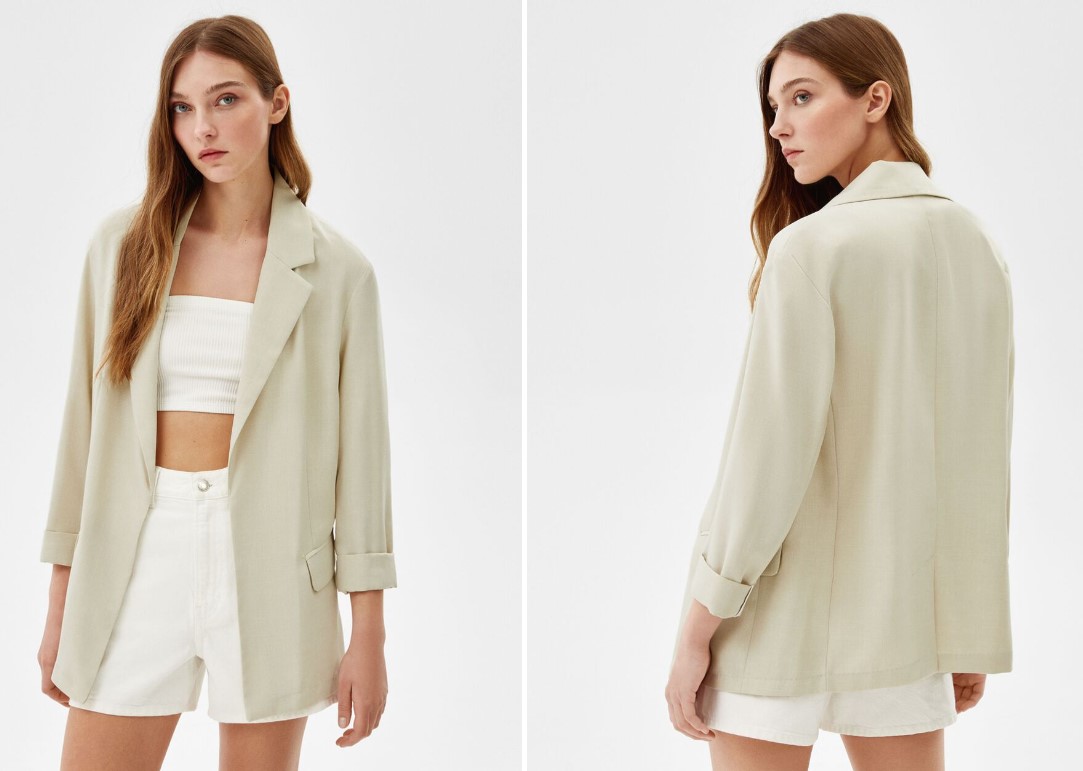 Entre las mejores ofertas de final de verano de Bershka encontramos este blazer fluido con corte femenino en color piedra, elaborado en 100% poliéster. Disponible en los talles del XS al L, también en color rosa o verde. Esta prenda combina con prácticamente todo. Desde vestidos de noche, vaqueros, hasta pantalones estampados o faldas satinadas. Es la mejor inversión que puedes hacer con la llegada del otoño. En la tienda está disponible con un descuento de un 30% y cuesta 18,19 euros.