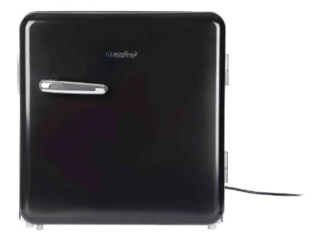 El último producto de Lidl que os vamos a presentar para poder enfriar nuestra bebida es la Comfee mini nevera negra. Tiene un diseño retro y también tiene una rebaja aplastante. Se puede encontrar actualmente en su página web por un precio final de 150 euros. Su pared trasera está cerrada, el tope de puerta es cambiable, los pies son ajustables, su bisagra lateral de cierre automático es de acero inoxidable, tiene ajuste de temperatura, y contiene un compartimiento para hielo también. Tiene capacidad para 47 litros, pesa cerca de 23 kilos y está hecho de plástico y metal. La única consideración que hay que tener es que va enchufado a la red eléctrica.