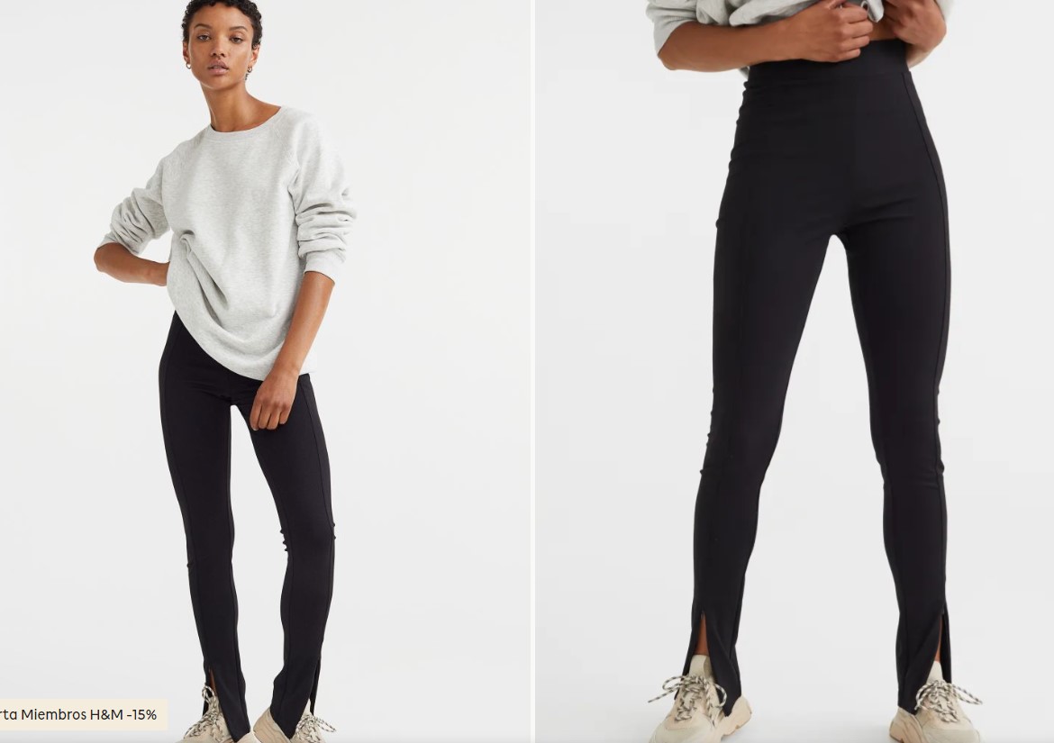 Por último, te mostramos este leggins de H&M en punto pesado de mezcla de viscosa con costuras visibles en las perneras. Se trata de un modelo de talle alto con elástico revestido en la cintura y cremallera oculta en los bajos. Están disponibles solo en color negro, en los talles que van del XS al XXL. El precio de venta es de 19,99 euros.