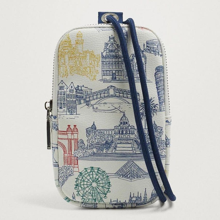 Si te gusta el minimalismo y salir lo menos cargada posible de casas, este es el bolso que necesitas en tu vida y no lo sabías. El bolso para móvil con cremallera y estampados cuesta 12,99 euros y, como su propio nombre indica, sirve para llevar protegido nuestro dispositivo móvil. Si nos centramos en sus características, tiene una correa para llevar al cuello o al hombro, una estampado de diferentes lugares del mundo y una cremallera para asegurar que no pierdes el teléfono.