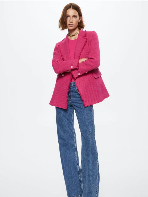 Cuando acaba el verano comienza una época de entretiempo en la que hay días que puede hacer tanto calor como frío. Y por eso es tan importante hacerse con prendas que sean adecuadas para esta particularidad. Pero además, que también te las puedas quitar y poner con facilidad, ya que en el mismo día puede oscilar mucho la temperatura de un momento a otro. Y para ello, no hay nada mejor que las chaquetas y las americanas. Esta que ves en la imagen es de Mango, y destaca por tener un tejido tipo tweed y un diseño estructurado. También tiene solapas y hombreras amplias. Su precio es de tan solo 69’99 euros. A continuación te mostramos más chaquetas y americanas que merece la pena que veas.