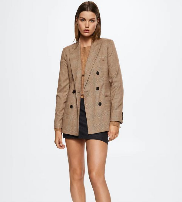 Las chaquetas americanas que tienen doble botonadura nunca pasan de moda. Si estás pensando en hacerte con una para esta temporada de entretiempo, te recomendamos que te pases por Mango y que te hagas con esta tan chula. También destaca por tener un estampado de cuadros muy chulo. Su precio es de solo 69’99 euros.
