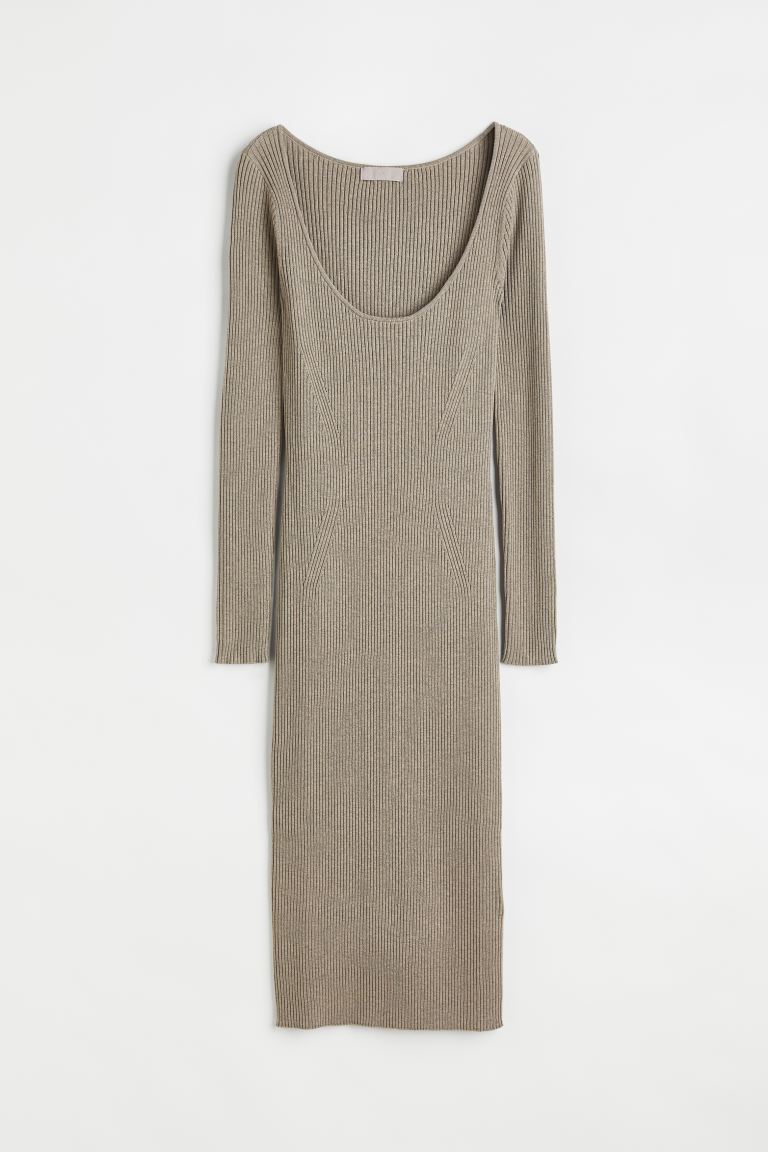 El punto canalé no falla, y es un tipo de tejido perfecto para vestir en entretiempo. Este tipo de vestidos de corte sencillo, están en tendencia, y son una opción muy confortable, a la par que versátil y elegante. Este diseño de H&M es entallado, por lo que también es muy favorecedor, y tiene un amplio escote redondo. Es largo hasta la rodilla y ligeramente ceñido. Está confeccionado en poliester, viscosa y poliamida, y el resultado es un tejido suave y muy agradable. Las opciones de combinación son infinitas y se convertirá en uno de tus básicos preferidos esta temporada. Lo tienes en beige grisáceo y en negro, por 29,99€.