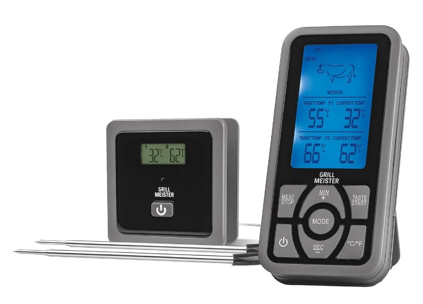 Consigue la cocción perfecta en todos tus platos con este completo accesorio de cocina. Funciona con dos sensores de temperatura de acero inoxidable conectados a una pantalla muy intuitiva. Cuenta con 8 programas de cocción y 5 niveles de cocción. Emite señales acústicas y luminosas cuando el alimento está listo. Lleva una sujeción para el cinturón, ideal para usar en barbacoas, en el jardín o en el camping. El rango de medición es amplio, entre -10 y 300 ºC. El precio de este pequeño aparato es de 16,99 euros.