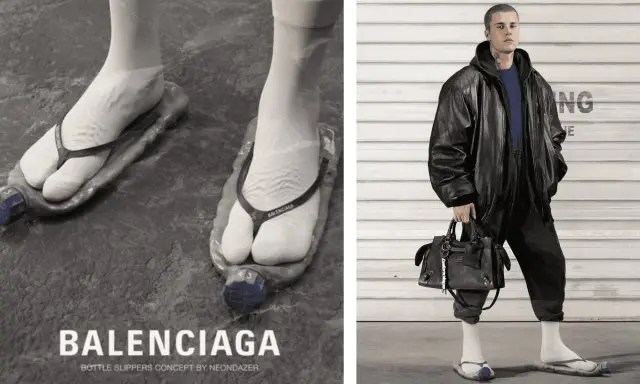 Esta semana saltó la polémica sobre una imagen que recorría las redes sociales, en la que se podía ver como Justin Bieber llevaba unas zapatillas a modo de chancla cuya suela imitaba una botella de agua aplastada. A esta imagen se le unieron otras en las que aparecía solo este modelo de zapatillas. Por lo que las imágenes en cuestión corrieron como la pólvora por los perfiles sociales, donde las principales voces que se pronunciaron fue en contra de la campaña.