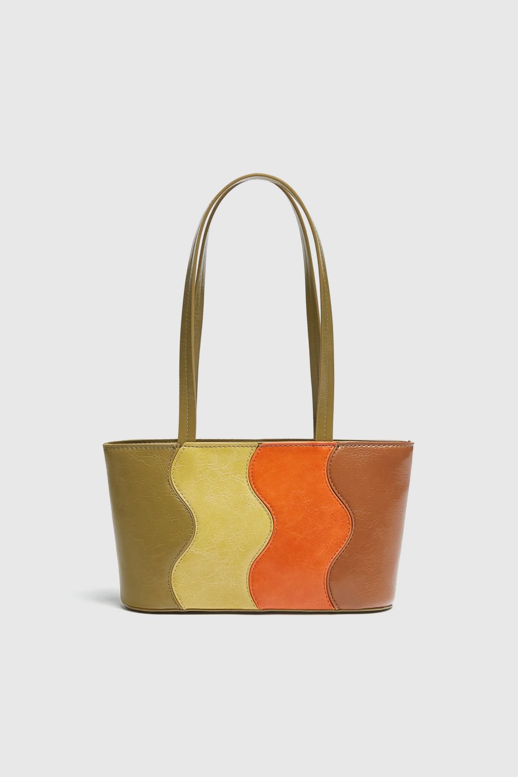 Una de las opciones más elegantes del nuevo catálogo de otoño de Pull&Bear es este precioso y sofisticado bolso de hombro de estilo retro de colores con asas cortas de hombro. No solo le dará un toque de color a cualquier look, sino que arreglará cualquier cosa que te pongas dándole un toque elegante y sofisticado. Su tamaño mediano es perfecto para meter todas tus pertenencias, y su cierre de cremallera le proporciona un extra de seguridad. Su precio es de 17,99.