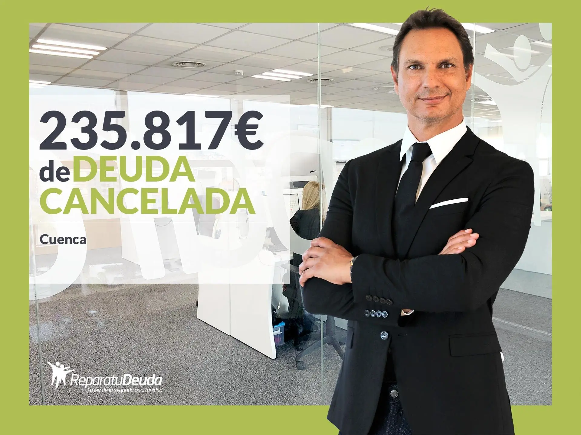 Repara tu Deuda Abogados, despacho de abogados líder en España en la tramitación de la Ley de Segunda Oportunidad, ha logrado una nueva cancelación de deuda en Cuenca. Mediante la gestión de Repara tu Deuda Abogados, el Juzgado de Primera Instancia nº3 de Cuenca ha dictado beneficio de exoneración del pasivo insatisfecho (BEPI), que había acumulado una deuda de 235.817 euros a la que no podía hacer frente. VER SENTENCIA.