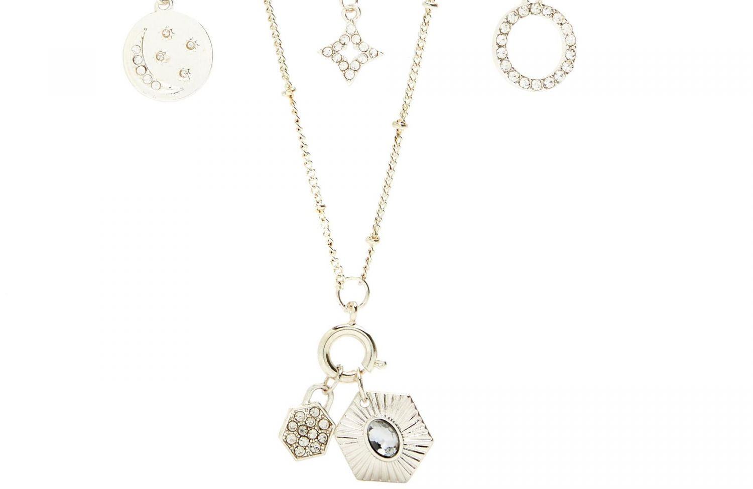 Este otro collar también es de las piezas plateadas que hay en el catálogo de bisutería de Primark. Su precio asciende a tan solo 3 euros. Se trata de un modelo con dijes intercambiables.
