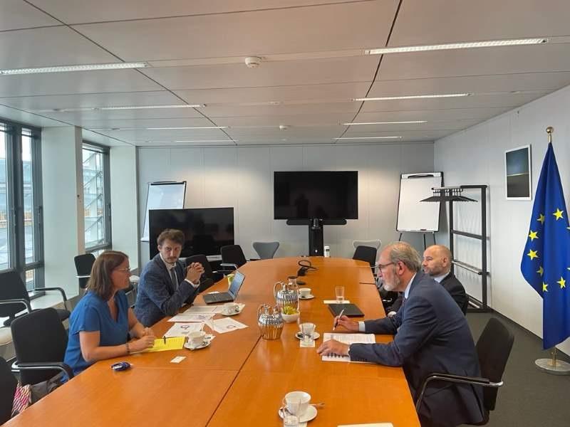 Se han mantenido diversas reuniones con el foco puesto en la energía y el medioambiente. Sendos encuentros han sido con representantes de la Dirección General de Energía de la Comisión Europea, en primer lugar con Cristina Lobillo, directora de Política Energética, así como con Tatiana Márquez, miembro del Gabinete de la comisaria Kadri Simson, donde se abordaron asuntos como la situación del mercado energético europeo -con una especial atención al mercado gasístico- y las alternativas para lograr reducir el precio del gas; también se trasladó la importancia de implementar medidas directas de apoyo a sectores industriales gasintensivos.