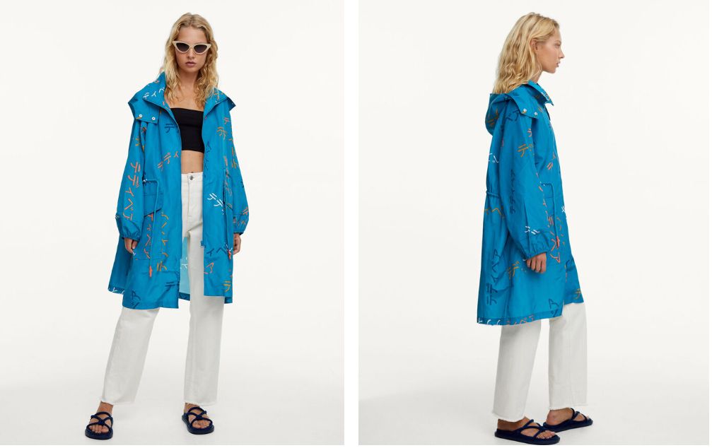 Y tras el verano llega también un otoño que suele ser lluvioso, aunque digan que no tanto como otros años. Lo que está claro es que lloverá, y en ciertas zonas de España sobre todo es imprescindible contar con un buen chubasquero, y nada mejor que este estampado para no llevar el típico neutro e ir a la moda incluso en estos casos. Es un chubasquero de manga larga con capucha, cierre de cremallera delantero y bolsillos delanteros. Su precio es de 59,99 euros.
