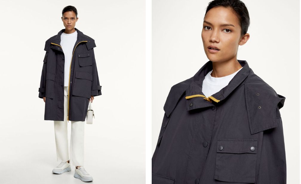 Continuamos con otro abrigo, pero de estilo totalmente diferente al anterior, en color negro y muy práctico para el día a día gracias a sus numerosos bolsillos y comodidad. Es un modelo de cuello alto con capucha y manga larga. Cierre delantero con cremallera, botones, y tres bolsillos delanteros. Se vende en este único color y tiene un precio en Parfois de 49,99 euros.