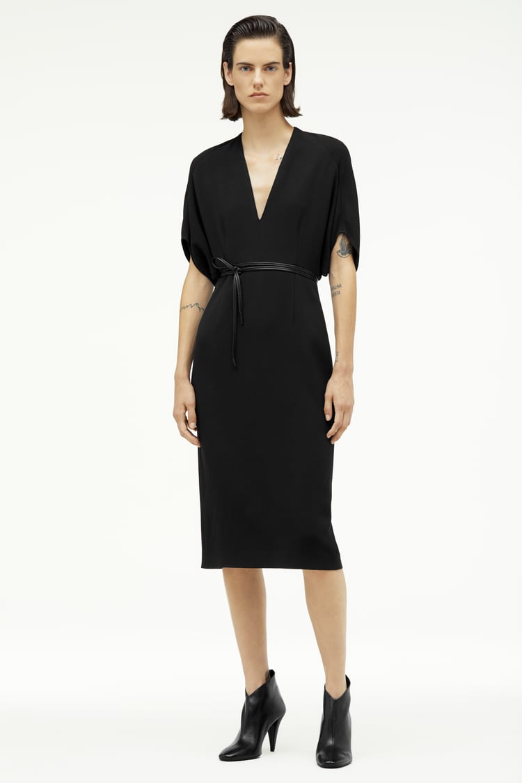 Este vestido midi de Narciso Rodríguez para Zara confeccionado con tejido en mezcla de viscosa , escote pico, manga corta fluida y bajo acabado en abertura es perfecto para ir a la oficia por su estilo elegante, sofisticado y sobrio. Pero además, es una prenda muy versátil que, combinada con unos buenos tacones, se convierte en una opción ideal para cualquier cena elegante. Su precio es de 139 euros y, combinado con el cinturón de la misma colección, cuyo precio es de 25,95 euros, puede ajustare a la cintura para que quede todavía más elegante y favorecedor.