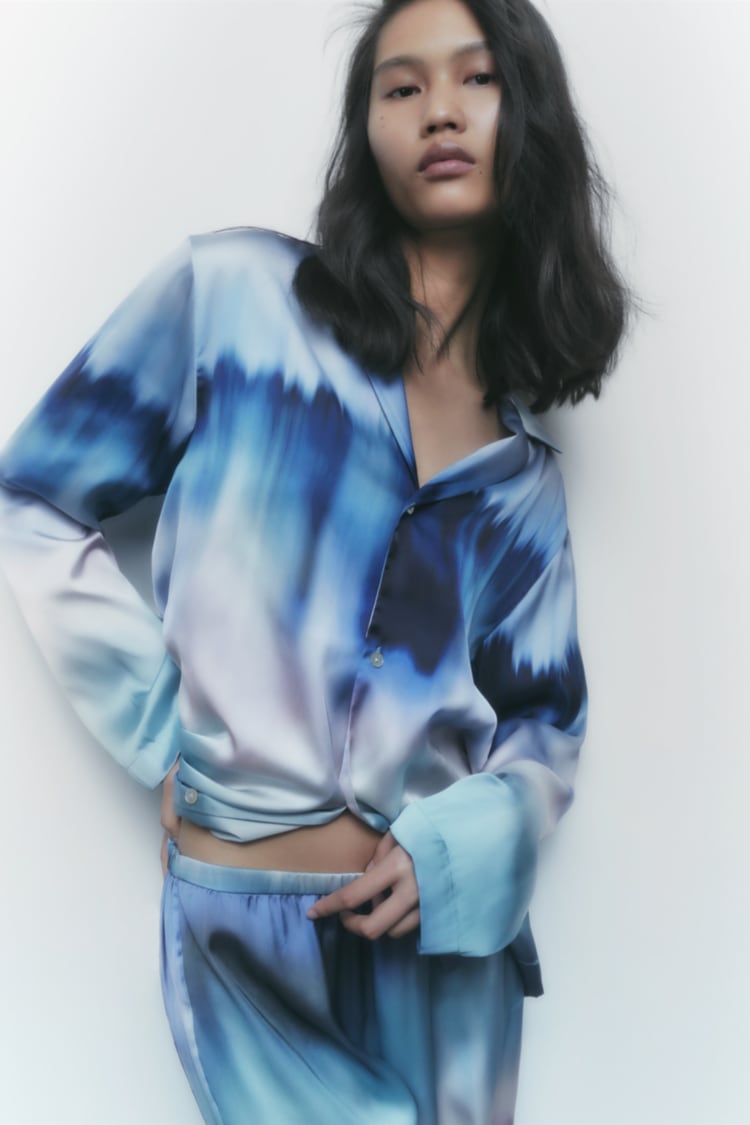 Camisa ligeramente oversize, con cuello de solapa y manga larga y ancha. El cierre frontal se hace mediante botones y, si quieres, en Zara tienes los pantalones a juego.