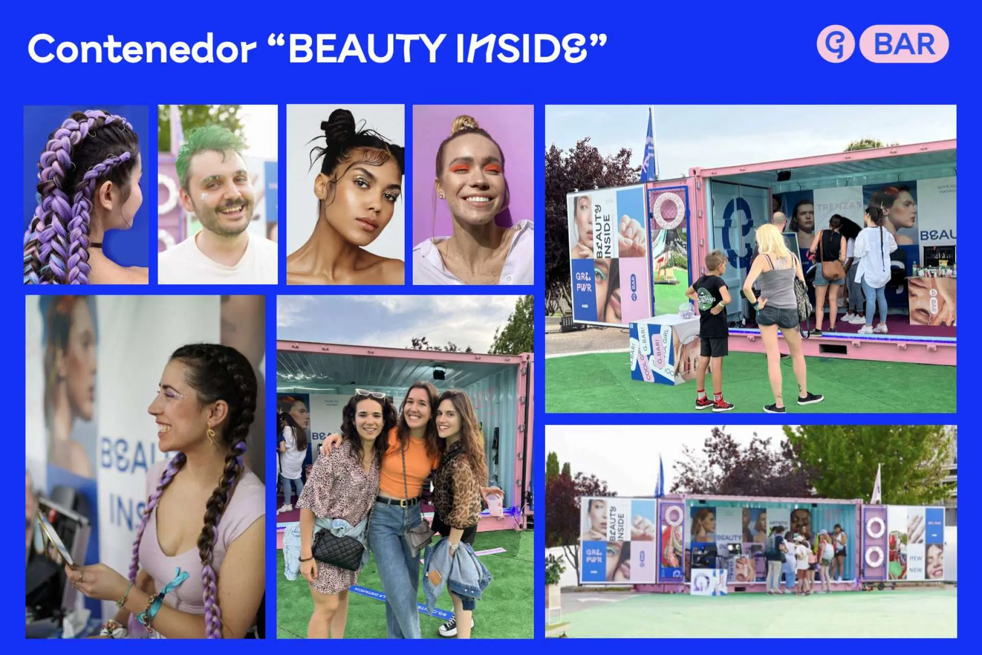 Una de las empresas más destacadas dentro del sector de experiencia beauty es G.Bar que, además del salón ubicado en Goya 103, Madrid, dispone de un formato móvil que en los últimos años ha recorrido varios de los festivales más importantes de la ciudad. Este servicio ha sido muy requerido tanto en eventos corporativos como en bodas y distintos tipos de fiestas.