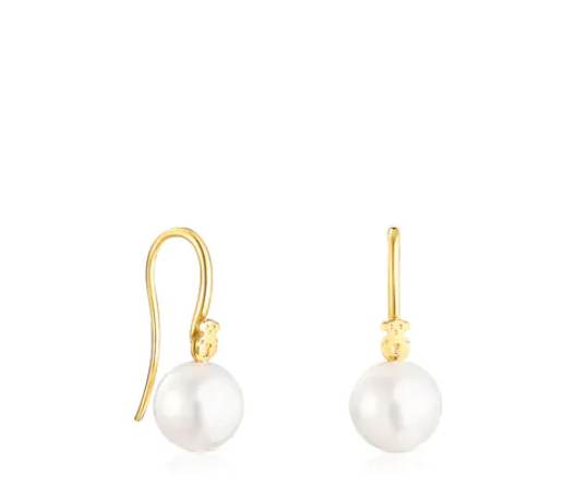 Pendientes de plata vermeil recubierta de oro de 18 kt sin ningún metal entre ambos. Rematados con una perla de agua dulce de 10 mm y cierre mediante sistema de gancho, pertenecientes a la colección Gloss.