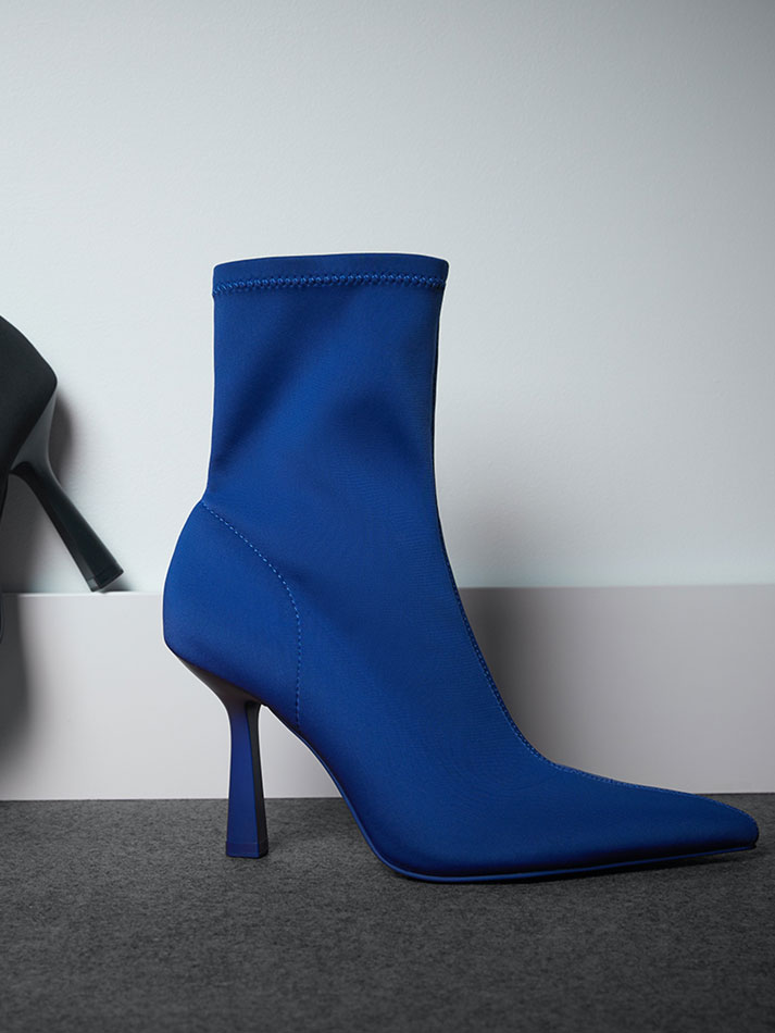 La nueva colección de Lefties está hecha para poder combinar todas las prendas entre sí. Buena muestra de ello son estos zapatos tipo botín de tacón y acabado en punta, con caña en tejido elástico y tacón fino, que puedes encontrar en tres colores diferentes (azul eléctrico, negro y rosa fucsia). Son perfectos para llevar con vestido, pero también quedarán genial con unos pantalones fluidos de traje. Su precio es de 27,99 euros.