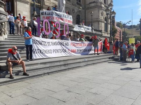 Como todos los lunes desde el 15 de enero de 2018, el Movimiento de Pensionistas se ha concentrado frente al Ayuntamiento de Bilbao en defensa de su tabla reivindicativa que abarca, entre otras cuestiones, unas pensiones «dignas».