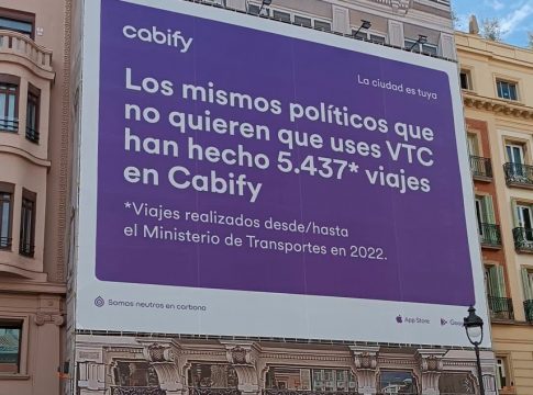 Quizás el ataque más llamativo ha sido el lanzado por Cabify. La empresa ha colocado varios carteles y anuncios en prensa señalando los 5437 viajes que se han hecho desde y hasta el ministerio de transporte, señalando que a pesar de las críticas recibidas desde el mismo los políticos y funcionarios del ministerio siguen recurriendo a la aplicación.