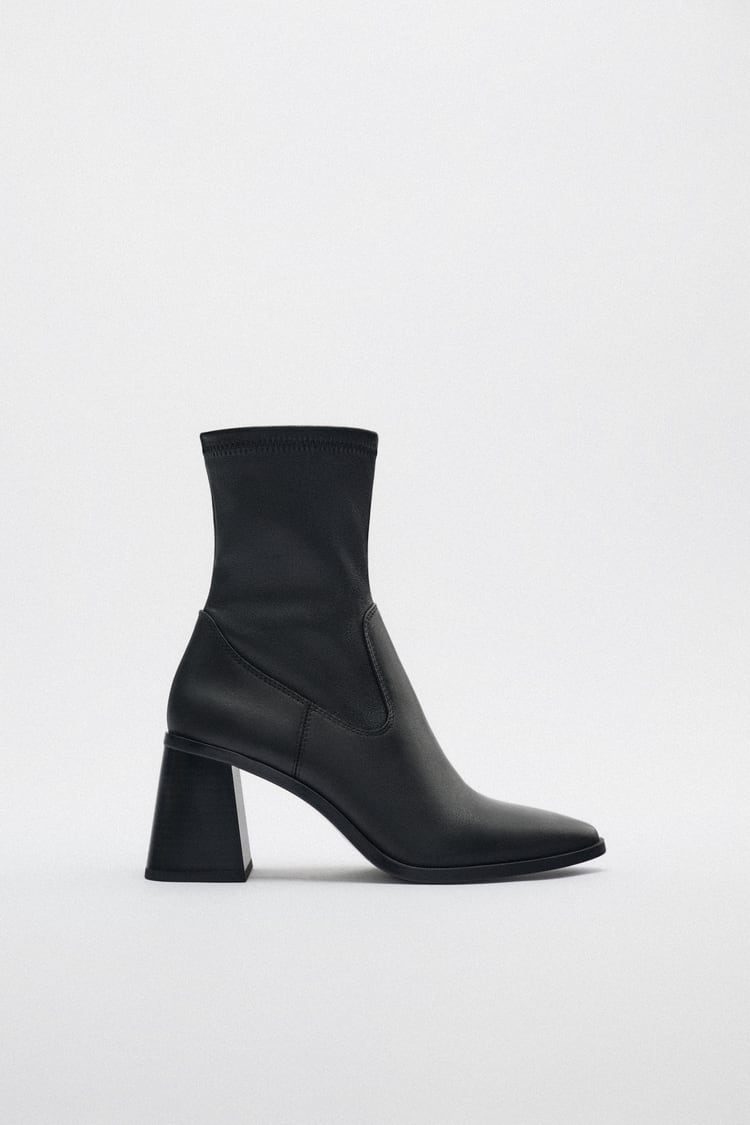 Por último, te traemos estos botines de Zara de piel con tacón ancho geométrico de 7 centrímetros, caña ajustada elástica y acabado en punta. Su diseño clásico los convierte en un calzado que nunca pasa de moda y podrás usar año tras año y seguir marcando tendencia. Están disponibles en negro y su precio es de 59,95 euros.
