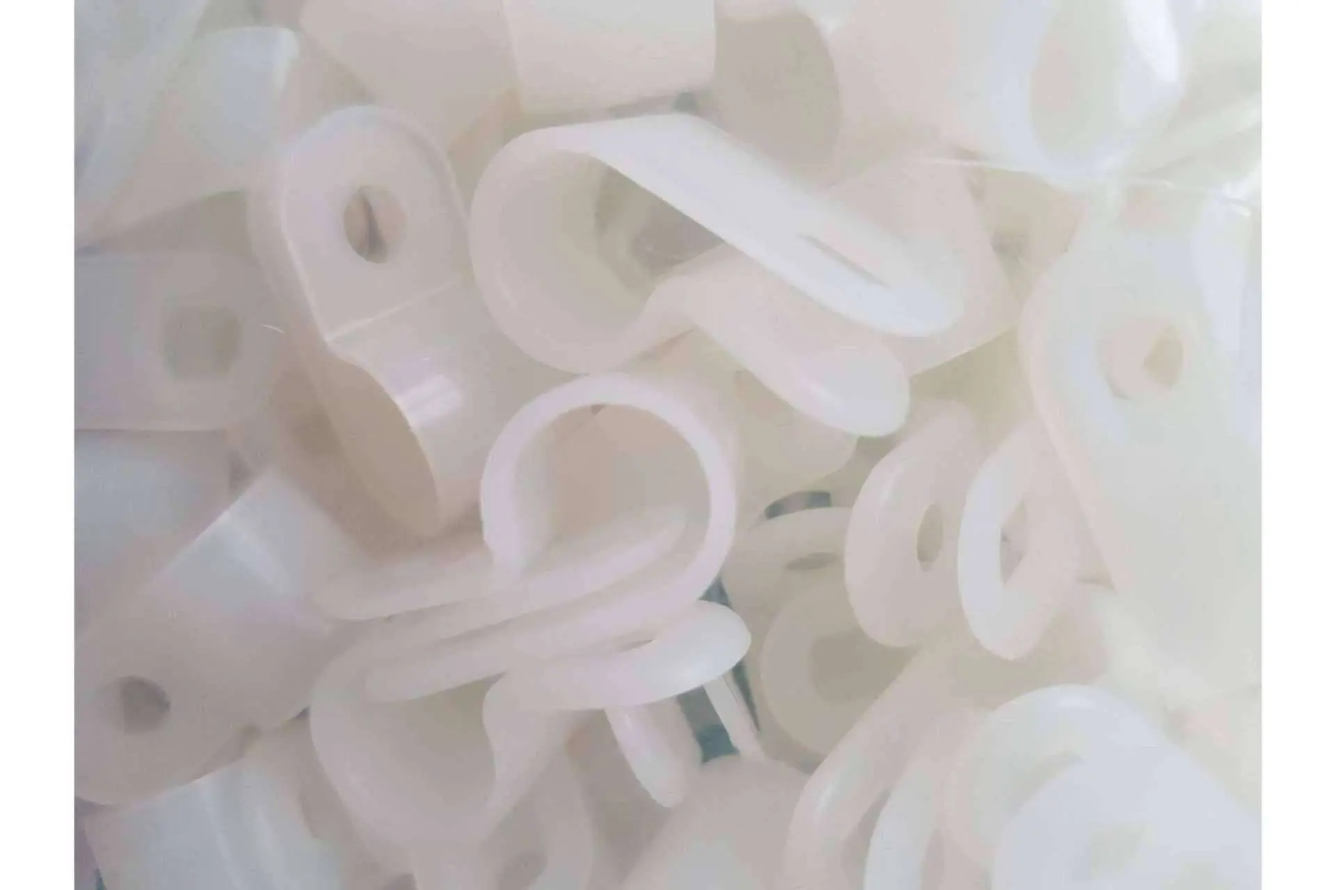 Para las unidades de cables más delgadas, existen clips o grapas sujetables que pueden distribuirse de tal manera que el cable se mantenga fuera de la vista y del alcance de niños o trabajadores no capacitados para manipular las redes eléctricas. Los clips son fabricados con el mismo tipo de nylon que las grapas para sujeción de cables, y también resisten temperaturas que otros artículos similares no logran soportar. Para instalaciones eléctricas de cables planos, Infosolucion también ofrece clips de enganche que permiten insertar el cable en una estructura dentada de poco movimiento que no afecta ni al aislante ni al interior de la unidad.