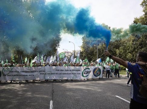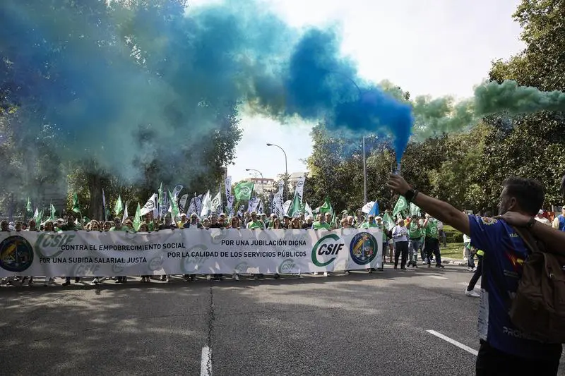 Miles de funcionarios se han manifestado este sábado en Madrid, convocados por la Central Sindical Independiente y de Funcionarios (CSIF), «por una subida salarial justa, contra el empobrecimiento social y el deterioro de los servicios públicos«.