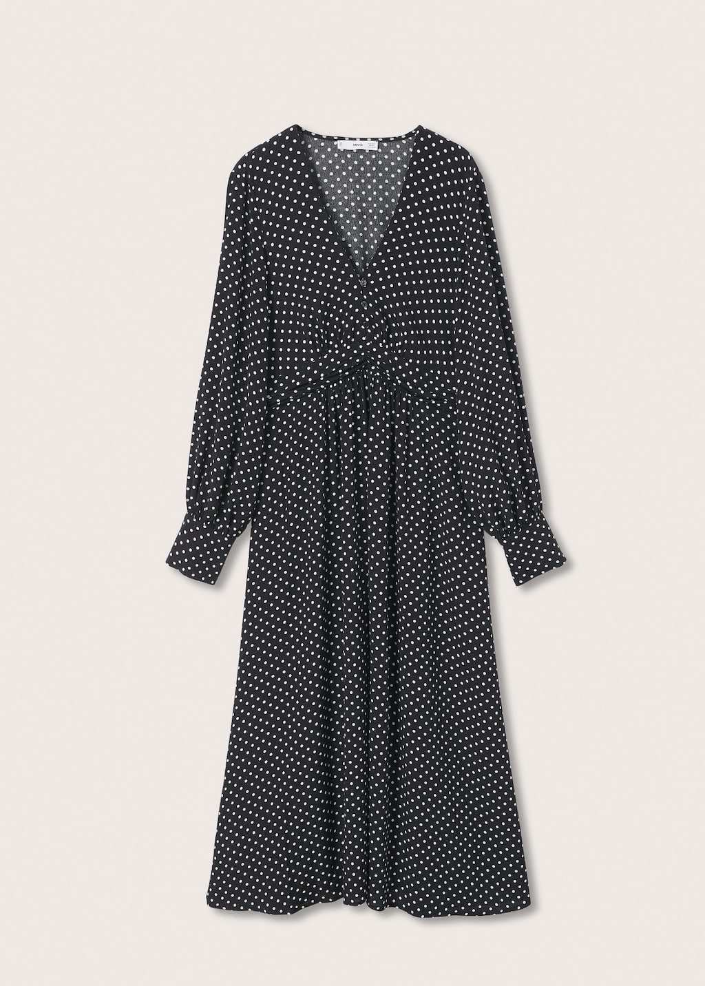Los vestidos de lunares son una prenda imprescindible en nuestros armarios. Uno de los más bonitos y favorecedores es este de Mango outlet, de tejido ligero, cintura entallada, bajo acampanado, escote pico y diseño midi, con cierre de botones en el cuello y manga tres cuartos abullonada. Su precio actual es de tan solo 19,99 euros, con una rebaja del 50% sobre su precio inicial, lo que lo convierte en una de las mejores gangas que puedes encontrar.