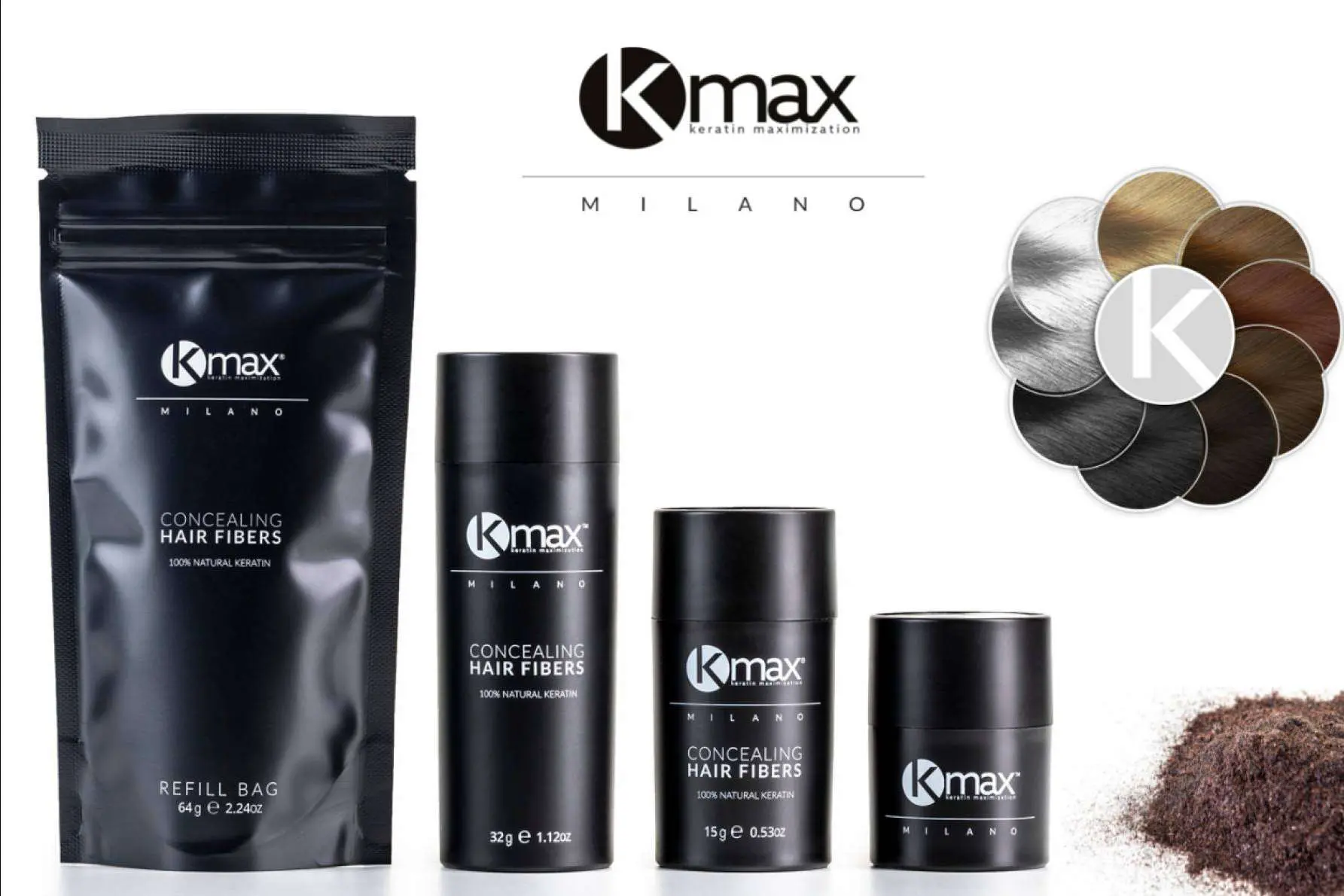 Este producto, concebido como una gran estrategia eficaz para disimular la falta de cabello o mejorar la densidad del cabello fino en pocos segundos, se comercializa por compañías de gran prestigio en el sector como Kmax, que dispone de un amplio catálogo y hasta 9 colores distintos.