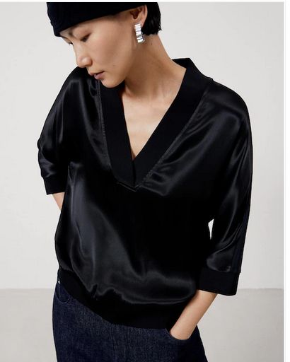 Y terminamos este artículo en el que te hemos mostrado varias blusas de El Corte Inglés que merecen la pena con esta tan bonita que ves en la imagen. Destaca por tener la manga francesa y el escote con pico. Su precio es de 119 euros.