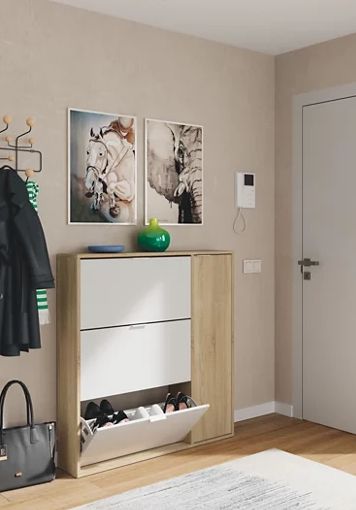 Otro mueble ideal de Leroy Merlin es este zapatero perfecto para colocar en el recibidor. Es de color blanco y roble, y tiene capacidad hasta para 30 pares de zapato. Cuenta con 3 trampones abatibles, y una puerta en un lado con 5 estantes sueltos, para zapatillas de casa o complementos. Las medidas son 106 x 115 x 22 cm (ancho x alto x fondo) y cuenta con el sello PEFC que garantiza que la madera que se ha usado proviene de una gestión sostenible. Una opción decorativa y práctica para toda la familia que cuesta 119 €.