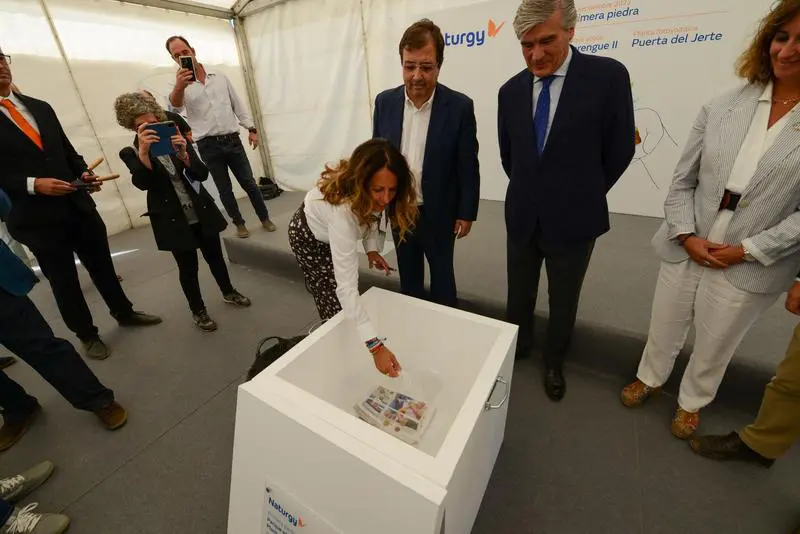 En el acto de puesta de primera piedra han asistido el presidente de la Junta de Extremadura, Guillermo Fernández Vara, y el presidente de Naturgy, Francisco Reynés, acompañados del alcalde de Plasencia, Fernando Pizarro, y la consejera de Transición Ecológica y Sostenibilidad, Olga García. También han participado el director general de Renovables, Nuevos Negocios e Innovación de Naturgy, Jorge Barredo; el director general de Sostenibilidad, Reputación y Relaciones Institucionales, Jordi García Tabernero, y el director general de Industria, Samuel Ruiz, junto a otros representantes de Naturgy y de las administraciones extremeñas.