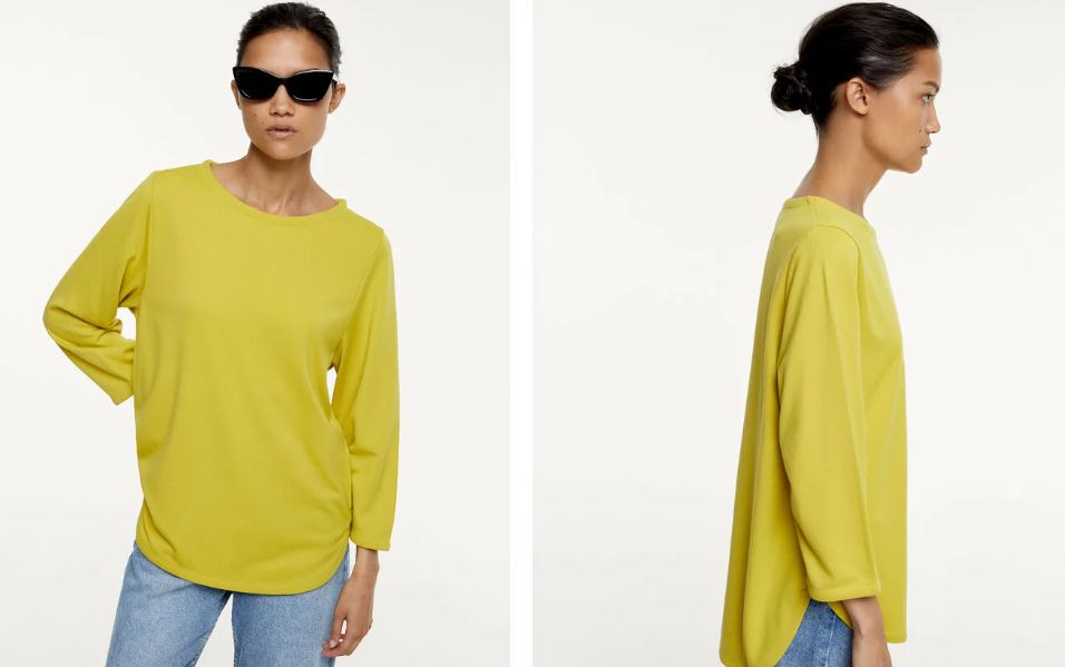 Vamos con un clásico de esta cadena, una prenda sencilla para el día a día como una camiseta de manga larga. Combina con todo y se vende en este único color pero que es tendencia. Es de cuello redondo y como ves combina a la perfección con unos vaqueros o cualquier pantalón. Es ideal para esos días que quedan aún de buen tiempo aunque ya sin que quepa un atuendo totalmente veraniego, o por supuesto combinar con una chaqueta o cazadora cuando el fresco asoma. La tienes por solo 22,99 euros.