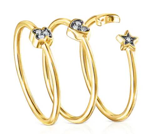 Los packs de anillos de Tous son ya todo un clásico. En esta ocasión la marca nos sorprende utilizando en estas joyas los diamantes de la colección Nocturne en talla single-cut de 0,03 ct.