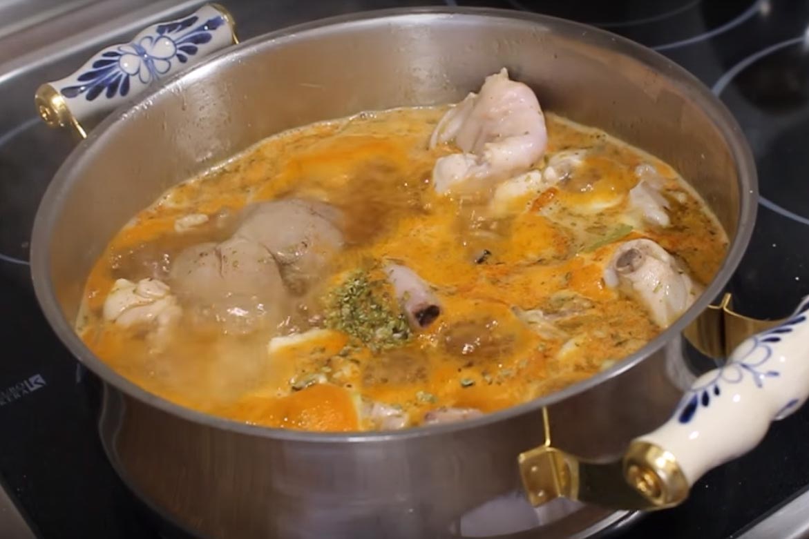 Cuando rompa el hervor, rectificamos de sal y añadimos las hiervas provenzales. Dejamos que se guise todo junto a fuego lento durante unos 50 minutos, hasta que la carne esté suave y tierna y se separe con facilidad del hueso. Antes de pasar las raciones al plato, agregamos perejil fresco picado y dejamos que se cocine unos 5 minutos más o hasta que la salsa tenga el espesor adecuado. Si se queda sin líquido durante la cocción, se puede añadir un poco más de caldo o agua. Lo ideal es que quede con una buena cantidad de salsa para poder mojar pan.