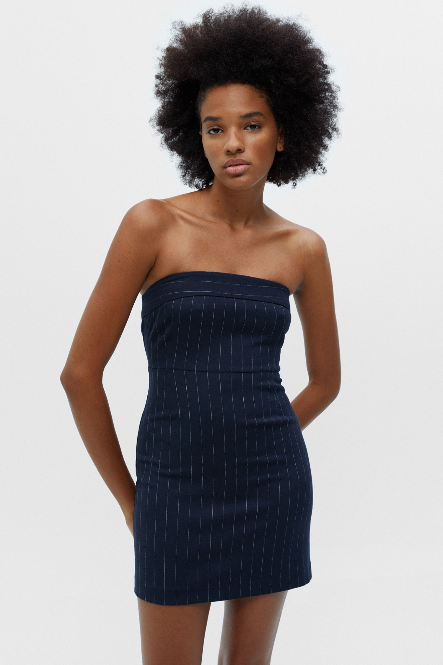 Por último, te traemos este elegante diseño de Stradivarius que podrás usar tanto para una noche de fiesta como para ir a la oficina. Este vestido corto palabra de honor con estampado de raya diplomática y silueta ajustada es una de las prendas más favorecedoras de la lista y una opción perfecta para combinar con unas medias y unos buenos tacones, aunque también sienta genial con unos botines o unas botas de caña alta. Su precio es de solo 22,99 euros.