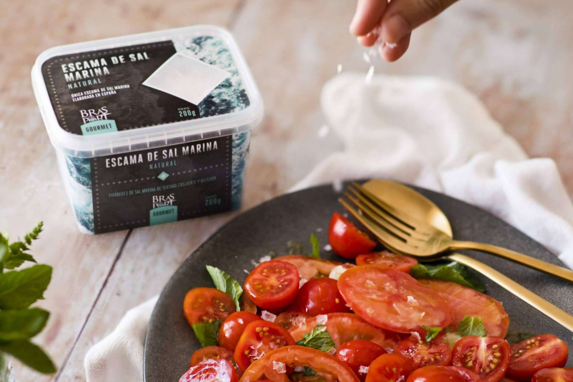 Finalmente, respecto al maridaje de la sal en escamas, esta combina con todo tipo de carnes, pescados y mariscos, tanto a la parrilla como asados. Quedarán estupendos con el toque final de estos cristales. También es ideal para realzar el sabor de salsas y cremas como gazpachos, hummus o guacamole, patatas y vegetales asados así como ensaladas o, simplemente, unos buenos tomates con un chorro de aceite de oliva y las escamas. No hay que olvidarse de las posibilidades en el terreno de los postres, ya que el contraste del dulce y el salado es sensacional cuando se usa para decorar, por ejemplo, una cobertura de chocolate o caramelo