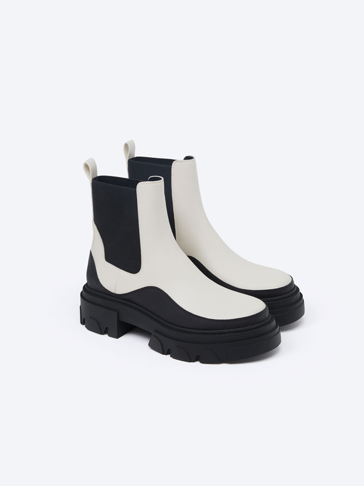 Si lo que buscas es un calzado moderno, original, diferente y rompedor, estos zapatos tipo botín de Lefties, con detalles a contraste de color en blanco y negro, detalle de elásticos en los laterales y tirador trasero para facilitar el calce son, sin lugar a dudas, una de las mejores opciones que te vas a encontrar. Además, gracias a su estilo plano y a su suela track que te protege del impacto con el suelo, son un calzado muy cómodo que podrás llevar a diario sin que te duelan los pies. Su precio es de 35,99 euros.