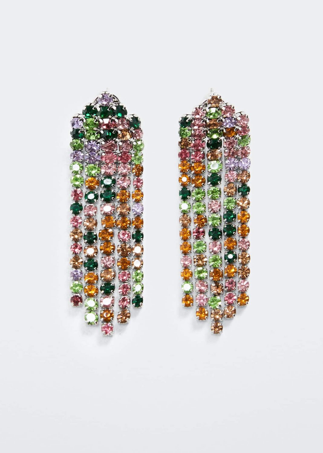 Estos pendientes de diseño multicolor con aplique de cristales de colores y cierre metálico a presión son uno de los accesorios más lujosos que te puedes encontrar en Mango. Además, pese a ser una pieza bisutería sus materiales son de gran calidad. Están compuestos a base de acero inoxidable y latón. Su precio es de 12,99 euros y están disponibles tanto en tiendas como online. Si te gusta este diseño, puedes combinarlos con un collar estilo choker a juego que tiene un precio de 15,99 euros. Combinados entre sí conseguirás un look formal y sofisticado perfecto para cualquier fiesta o evento. A continuación te mostramos otras muchas opciones que puedes encontrar en Mango.