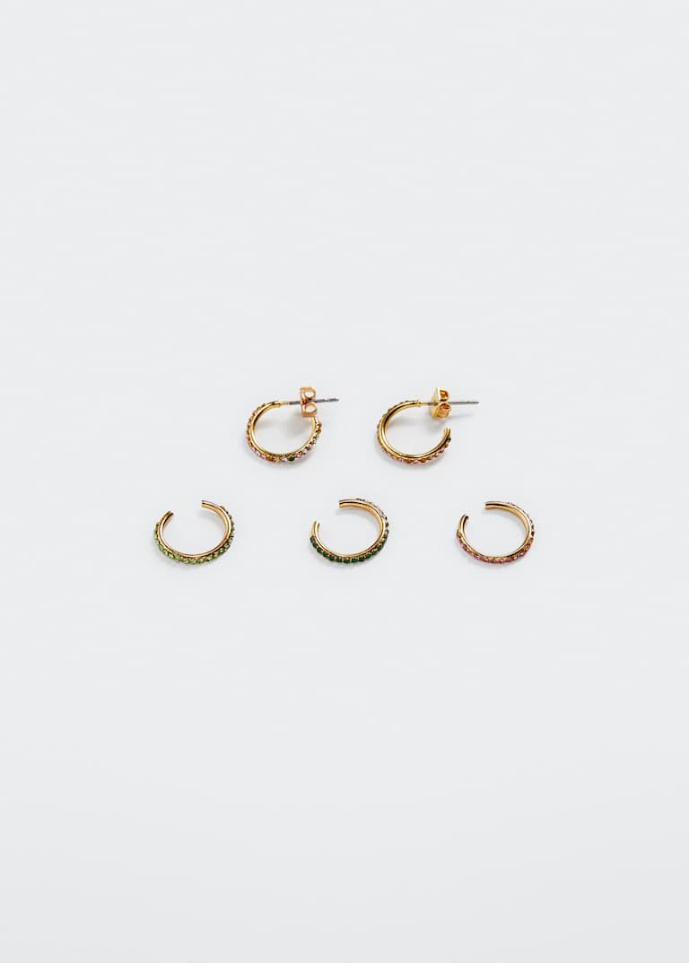 Otro de los mejores accesorios que puedes encontrar disponible en Mango, tanto en sus tiendas físicas como online, es este set de pendientes ear cuff de acero inoxidable y aplique de cristales y cierre metálico a presión. Son perfectos porque muchos de ellos pueden usarse aunque no tengas perforaciones en las orejas, por lo que podrás combinarlos y colocarlos como tú quieras. Su precio es 12,99 euros.