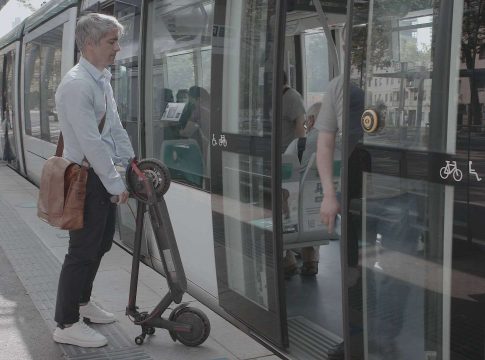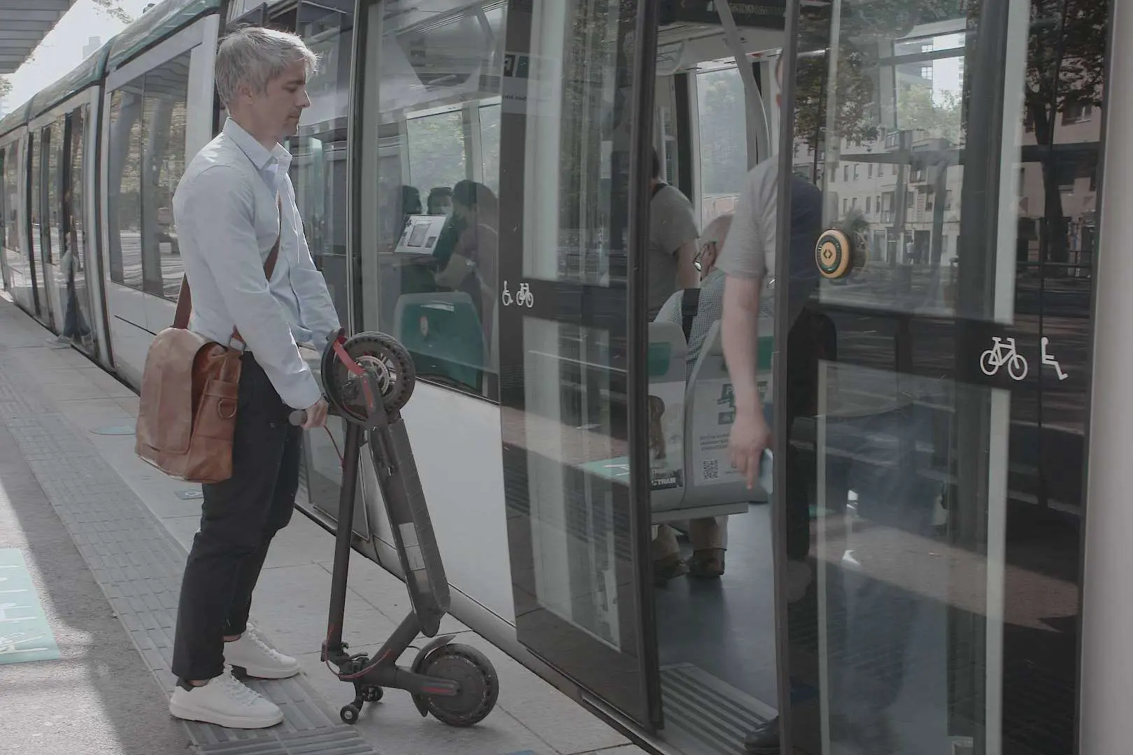 Mover fácilmente el patinete eléctrico en el transporte público con V-mount