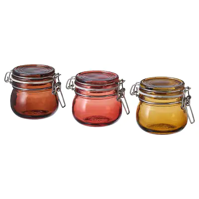 Las propuestas de Ikea nos permiten organizar y decorar al mismo tiempo. Un buen ejemplo son estos pequeños botes de vidrio de colores con tapa hermética que pueden utilizarse para almacenar cualquier cosa, desde mermeladas caseras, hasta especias, hierbas o tés.