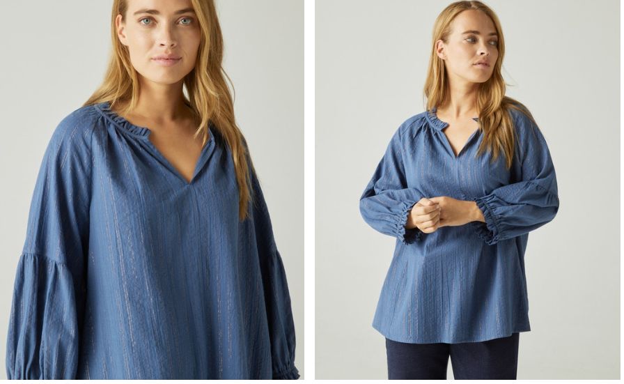 Veamos un estilo muy parecido, con ese aire vaquero pero que nada tiene que ver, ya que es un blusa con lurex y manga francesa, perfecta también para el entretiempo. La tienes en color crema y azul oscuro, así que con el descuento igual te atrae la idea de comprar una de cada, ya que se queda a un precio de 39,99 euros. Una prenda cómoda y perfecta para el día a día que puedes comprar en este enlace de El Corte Inglés.