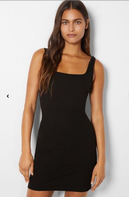 9Vestido con tirantes y escote tipo rib, de Bershka