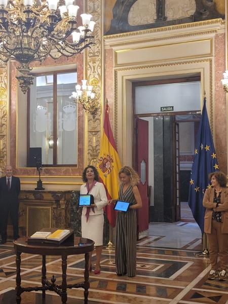 La ministra de Hacienda y Función y Pública, María Jesús Montero, ha hecho entrega este jueves del proyecto de Presupuestos Generales del Estado de 2023 a la presidenta del Congreso, Meritxel Batet, para el registro de las cuentas y el inicio de su tramitación parlamentaria.