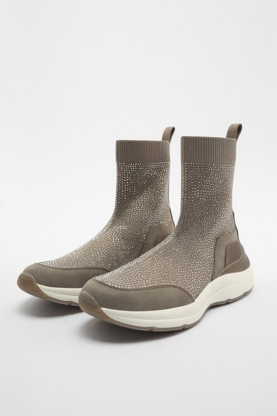Las deportivas abotonadas son una tendencia que amas u odias, pero que no deja indiferente a nadie. ¿A qué “team” perteneces tú? Una de las novedades de Zara son estas zapatillas en forma de botín con un tejido elástico que se adapta al tobillo y con llamativos detalles brillantes. Son de color tostado, con la suela en contraste de color. Cuenta con una plantilla técnica muy flexible para caminar horas con un confort óptimo. Tiene un tirador trasero y la suela tiene una altura de 3 cm. Llévatelas por 49,95€.